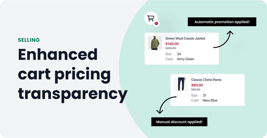 The cart now displays discounted amounts in conjunction with original prices.